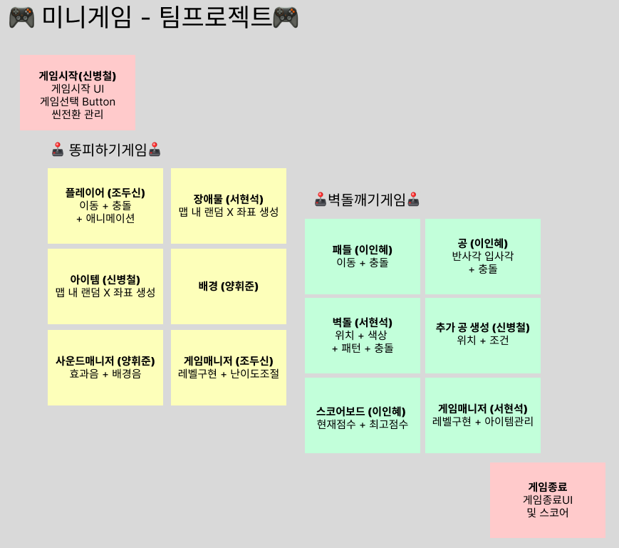 🔥 10/23 수요일 목표 🔥 🔎 Unity 게임 개발 숙련 강의 수강하기 🔎 개인과제발제 📌 필수 기능 가이드더보기기본 이동 및 점프 Input System, Rigidbody ForceMode (난이도 : ★★☆☆☆) 3강 플레이어의 이동(WASD), 점프(Space) 등을 설정체력바 UI (난이도 : ★★☆☆☆) 4강 UI 캔버스에 체력바를 추가하고 플레이어의 체력을 나타내도록 설정. 플레이어의 체력이 변할 때마다 UI 갱신.동적 환경 조사 Raycast UI (난이도: ★★★☆☆) 10강, 11강 Raycast를 통해 플레이어가 조사하는 오브젝트의 정보를 UI에 표시. 예) 플레이어가 바라보는 오브젝트..